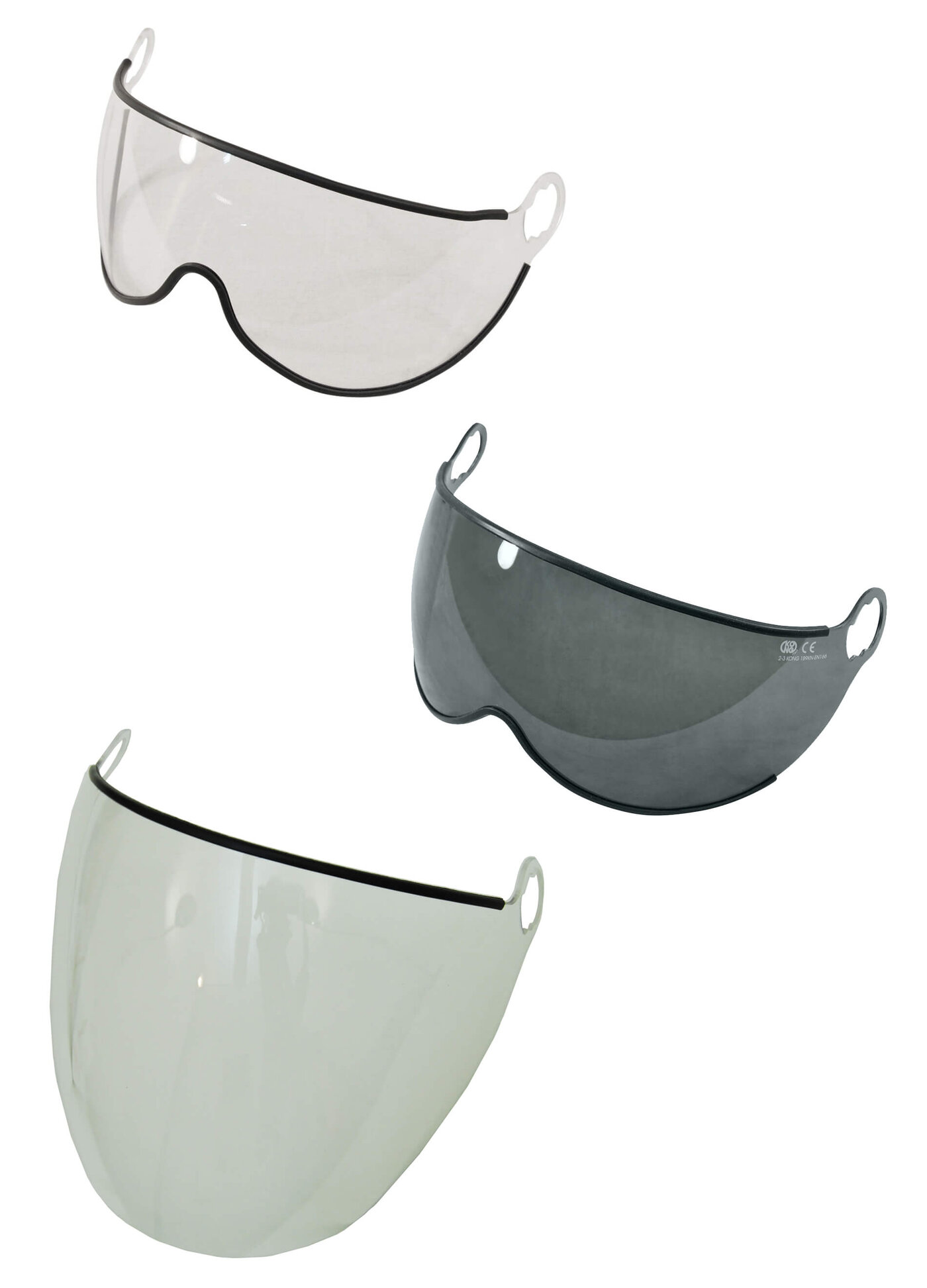 Schützt vor Hochgeschwindigkeitsprojektion (120 m/s) von Partikeln bei Raumtemperatur (Klasse B), UV-Strahlen (nur getönte Version 4290103R).